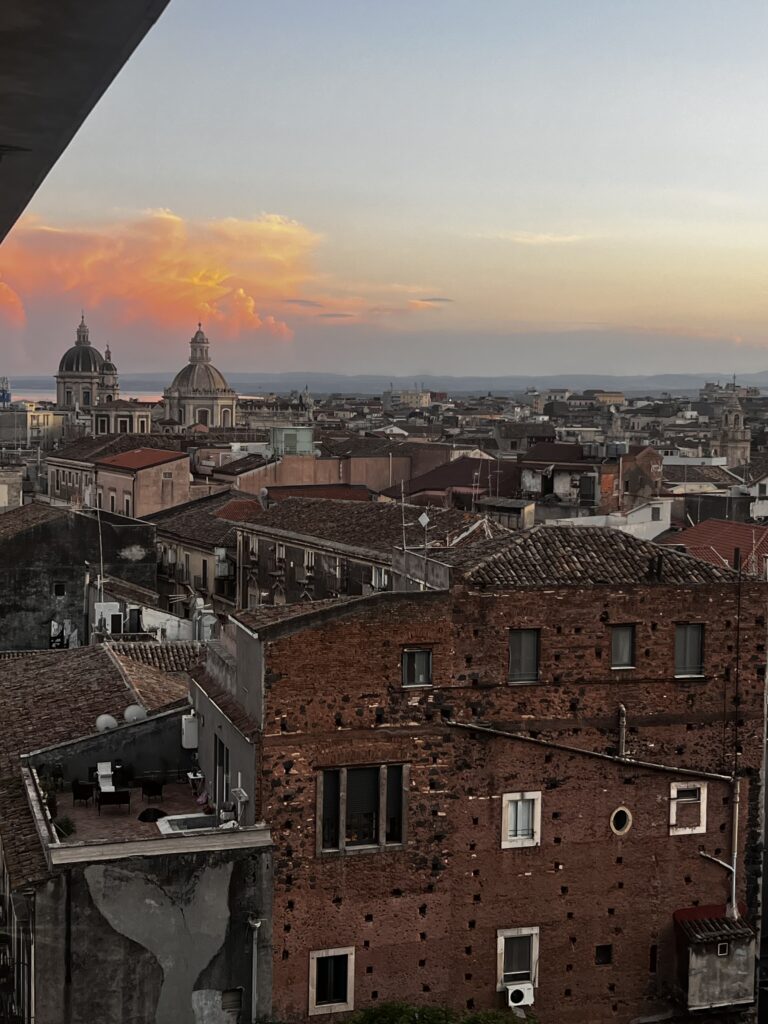 Non ha ricordi d’infanzia legati a Catania, ma ne ha costruiti di nuovi. Quando è arrivata, la città le è sembrata triste, abbandonata. “Mi dispiaceva per lei,” racconta, “sembrava trascurata.” Poi, però, ha imparato a guardarla meglio: dietro le porte socchiuse di via Crociferi, tra le pietre antiche e i lavori in corso, ha sentito che Catania non era ferma. Era viva. Viva nei profumi di melanzane fritte, nei rumori dei martelli, nelle voci dei vicoli. Anche dove sembra un museo, Catania continua a respirare.